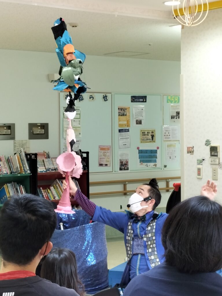 クリスタルボールのコンタクトジャグリング、鳥のパペットを使ったオリジナルの曲芸ショー(フラミンゴ&タゲリ&メジロのけん玉パフォーマンス、カワセミパペットを使った創作パフォーマンスなど)、バウンスボールジャグリングや飛行機のバランス芸を行いました。