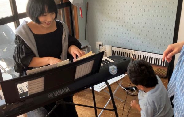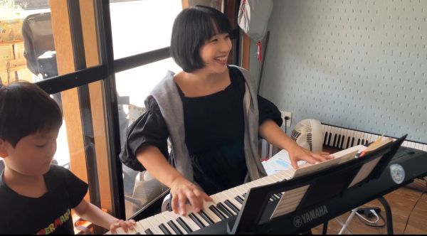 お子さん達の好きな「マリオ」を弾くと、ピアノのところへ近寄ってきてピアノに触れ始めました。 ということで、最後は一緒にピアノでグリッサンドに挑戦!