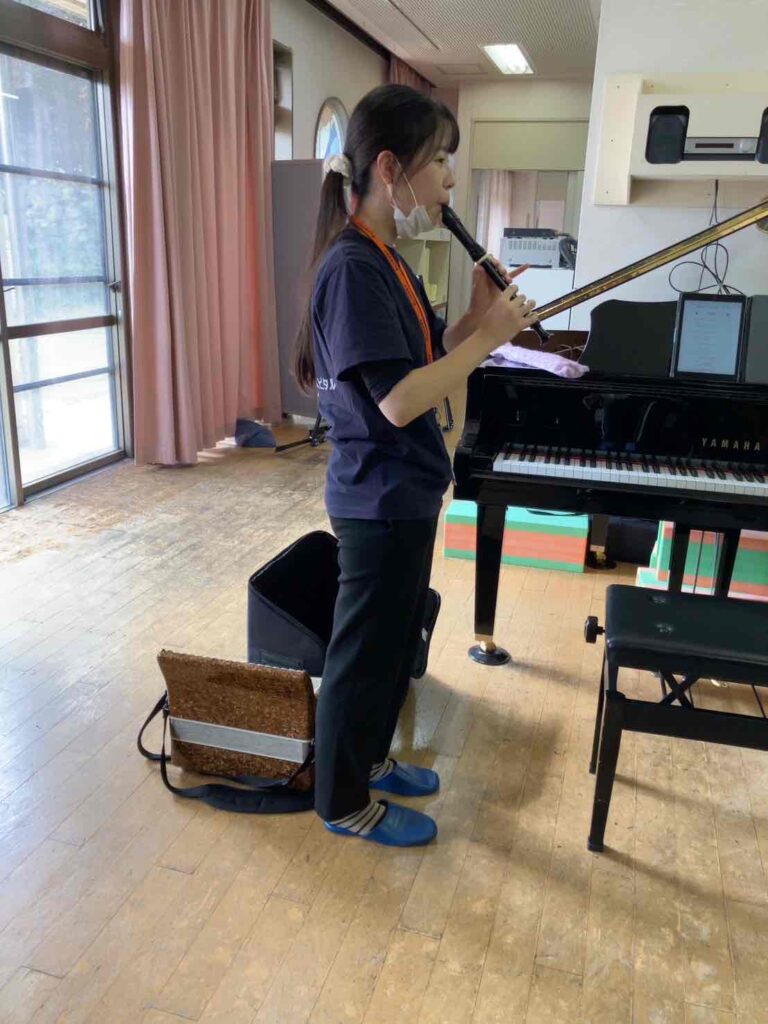 リコーダーの音が聴こえると、それまで静かに座っていたお友達が声を上げて反応してくれる姿があり、「好きな音に出会った瞬間」に立ち会うことができ胸があたたかくなりました。