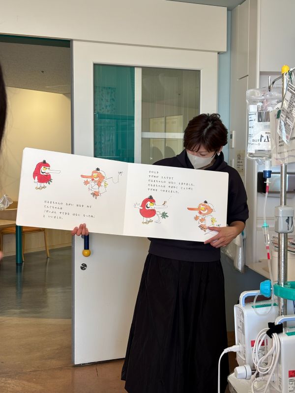 病室では、絵本を読む時の相談をしてくださる親御さんも。好きな本と出合えたり、親子のコミュニケーションが増えるきっかけとなれたら嬉しいです。また次回に向けて、楽しみに準備します。