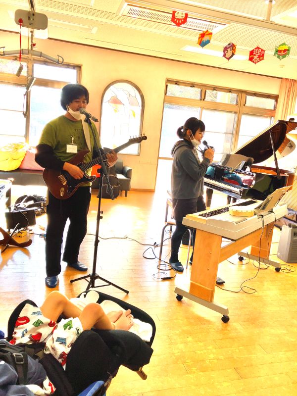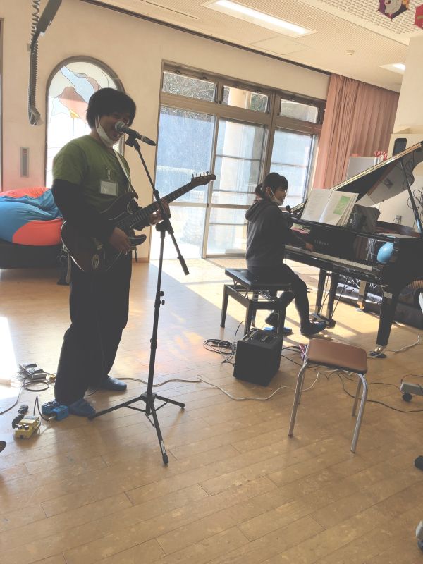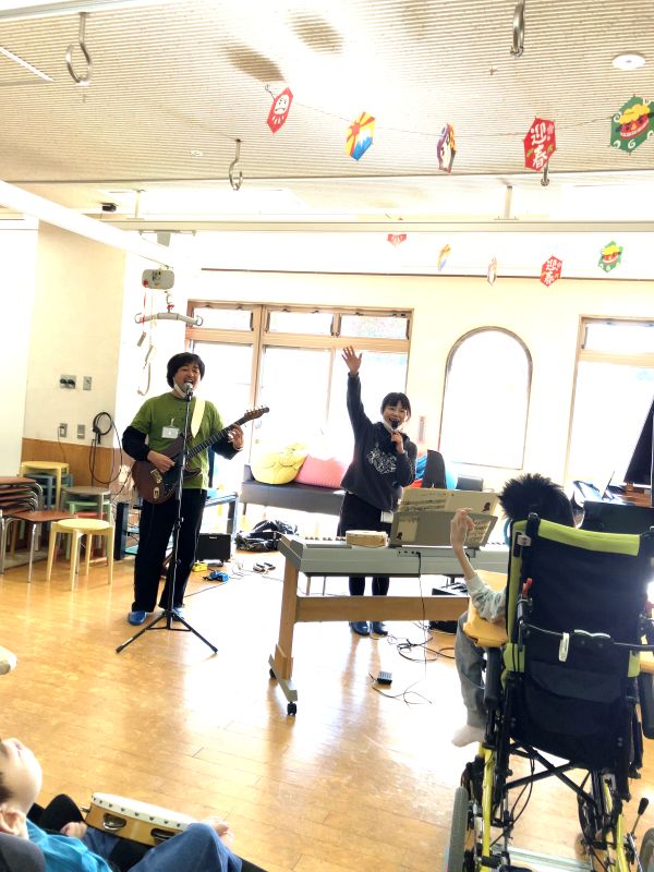 タンバリンや鈴など、参加者の皆さんとリズムで一体感のある進行を心がけ、Saltによるエレキギターのアクションを目の前で体感してもらい、「生演奏はオンラインとは全然違う」と何度も言ってもらえて大変嬉しく感じました。