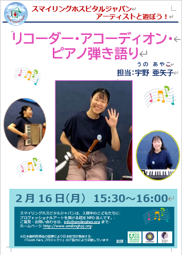 アコーディオンが登場した際には、前回の訪問を覚えていて「アコーディオンだ!」と目を輝かせて声をあげてくれたお子さんもおり、驚くと同時に、とても嬉しい気持ちになりました!