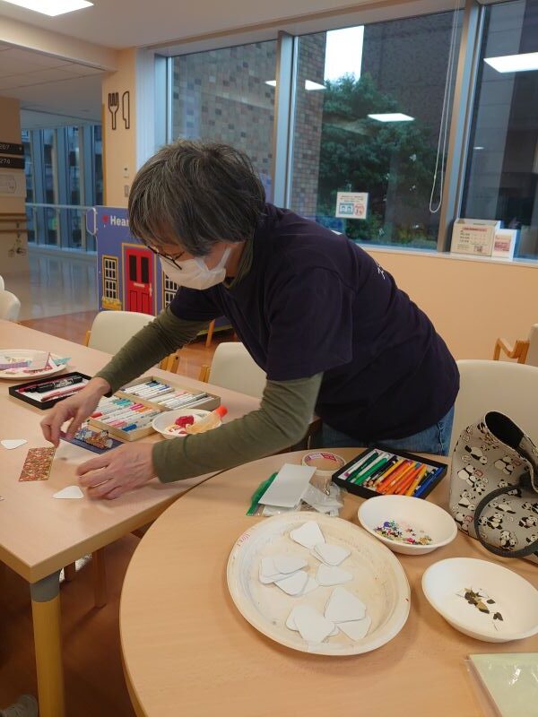 小学低学年の女の子、見本の金髪のおひなさまを見て、「わたしは、この色」と言って明るい茶色を選んで塗っていました。