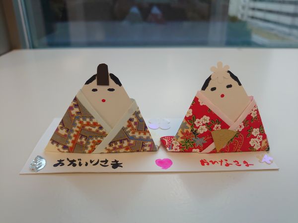 ひな祭りが近いので、おひなさまとおだいりさまを作りました。