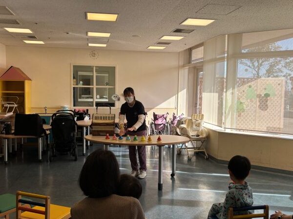 デスクベルでは、音を鳴らした瞬間、場が静まり返りとても集中して音をいてくれた瞬間でした。お友達の近くで演奏すると、楽器が動くたびに目線で追ってくれたり、思わず手が伸びてきたりと、意欲的に参加してくれるお友達が多く嬉しかったです。
